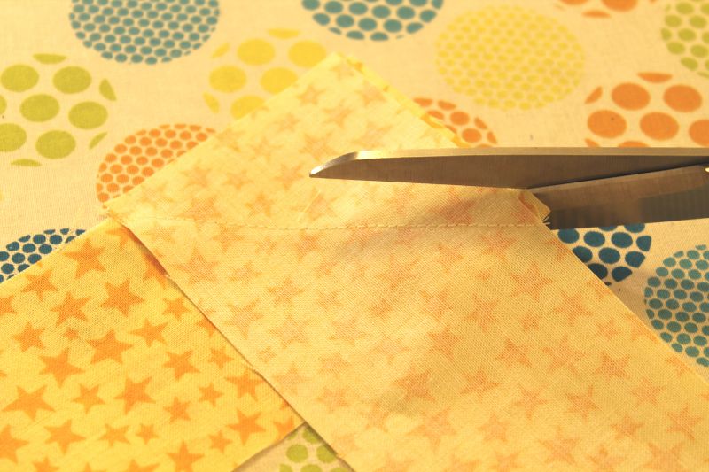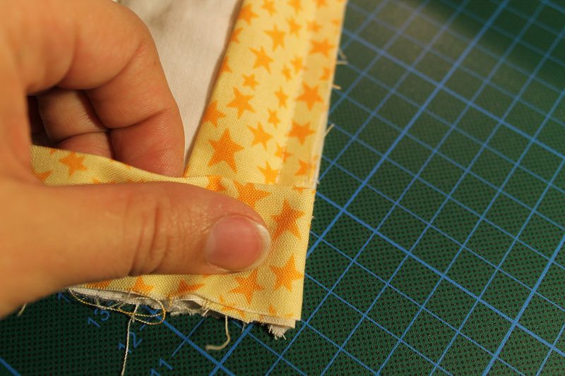 Die Ecken werden abgeschnitten und dann zurück gebügelt.
