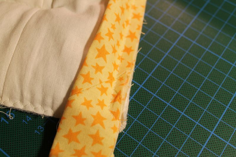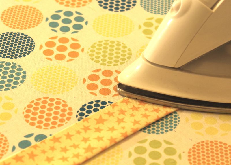 Die Nahtzugabe wird auseinander gebügelt, dann gibt es weniger Knubbel in der Bindung.