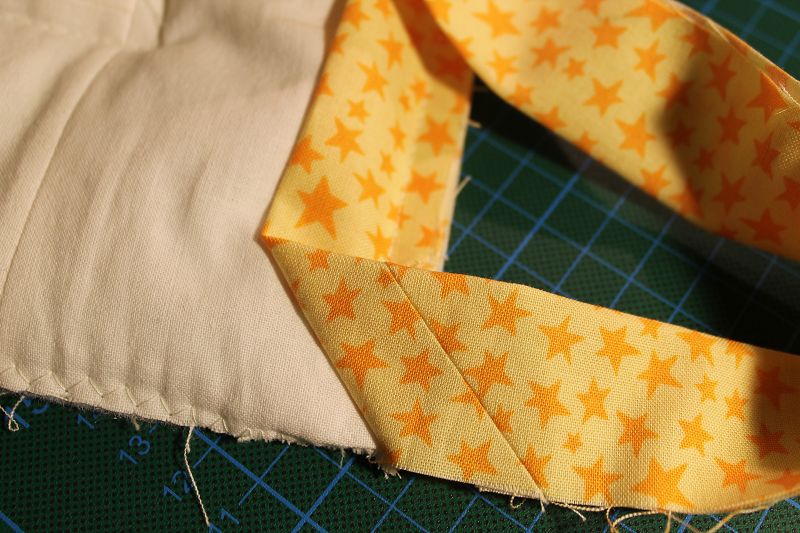Ich habe meinen Quilt mit Zickzackstich versäubert, das kann jeder nach Belieben machen oder nicht. Ich finde es hilfreich beim Binden.