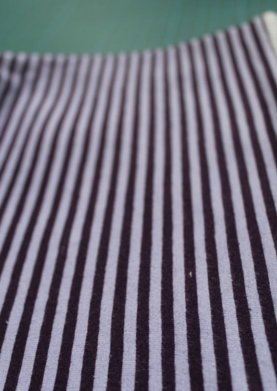 Als Außenstoff habe ich einen lila gestreiften Jersey von Königreich der Stoffe genommen.