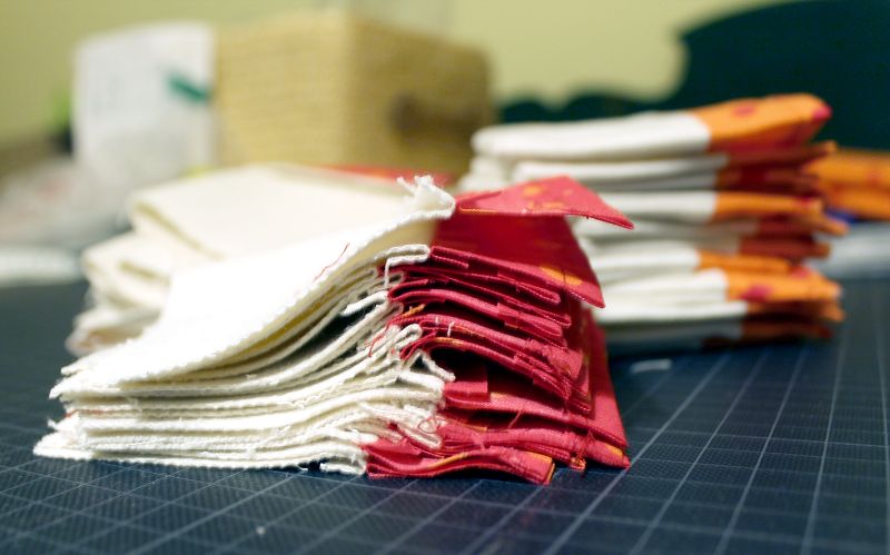 Um das Nähen zu beschleunigen habe ich hier wieder die Chain-Piecing-Methode angewendet, die ich schon beim Quilt-Nähen gezeigt habe.