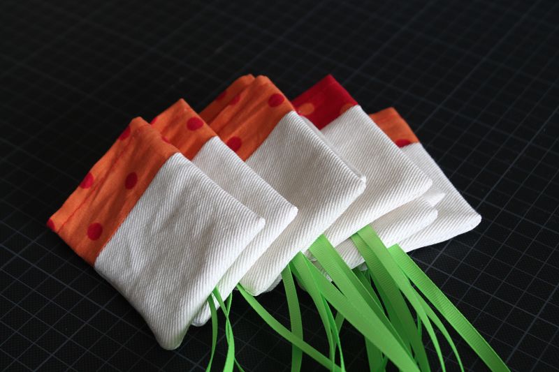 Zum Zubinden habe ich hellgrünes Ripsband genommen.