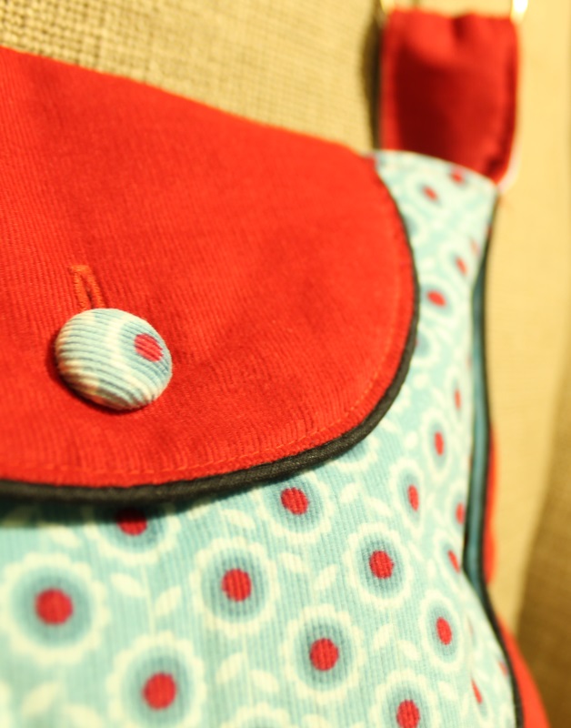 Der hintere Außenstoff ist ein wunderschöner Feincord von Hamburger Liebe, „Thing I Love“ Girls Daisies aqua. Der gefällt mir besonders gut, dieses Stoffschätzchen habe ich für mich reserviert.