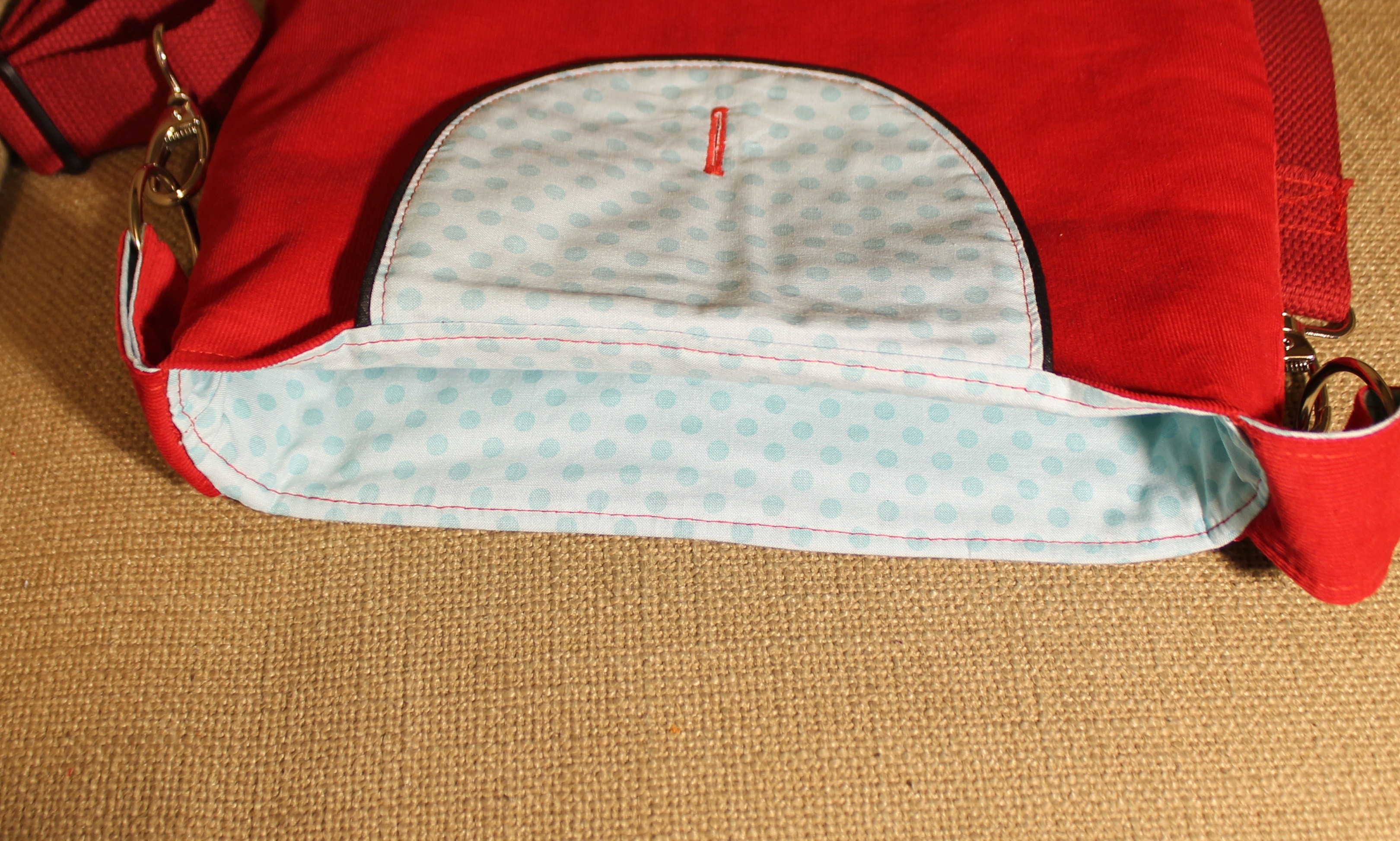 Als Innenstoff habe ich einen gepunkteten Stoff von Riley Blake in aqua genommen.