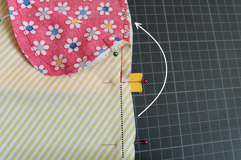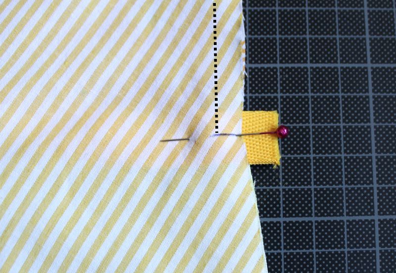 Die Naht geht bis zur Markierung und wird hier gut verriegelt, das heißt ein paarmal für mehrere Stiche hin- und her-nähen.
