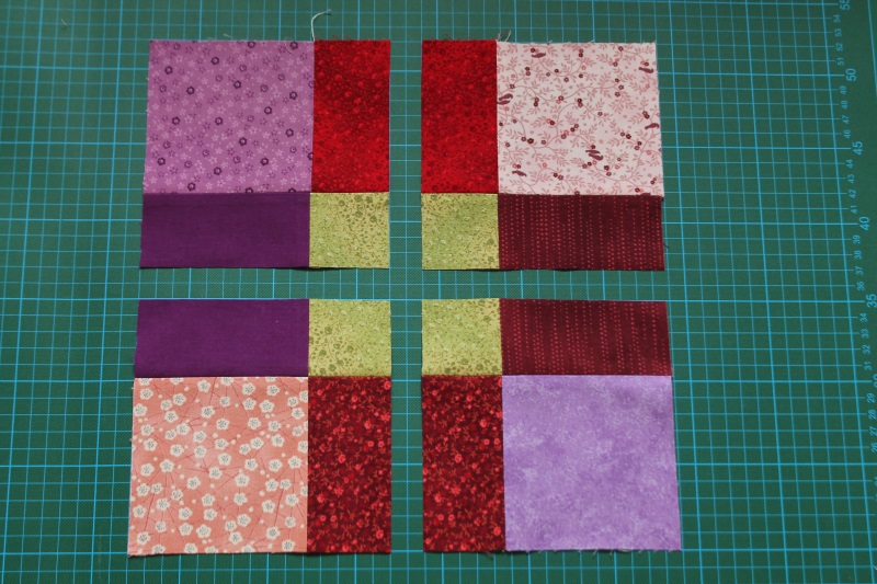 Die Quadrate werden mit 1/4 inch Nahtzugabe zusammengenäht, ich bin dabei wieder nach der hier gezeigten Methode vorgegangen.