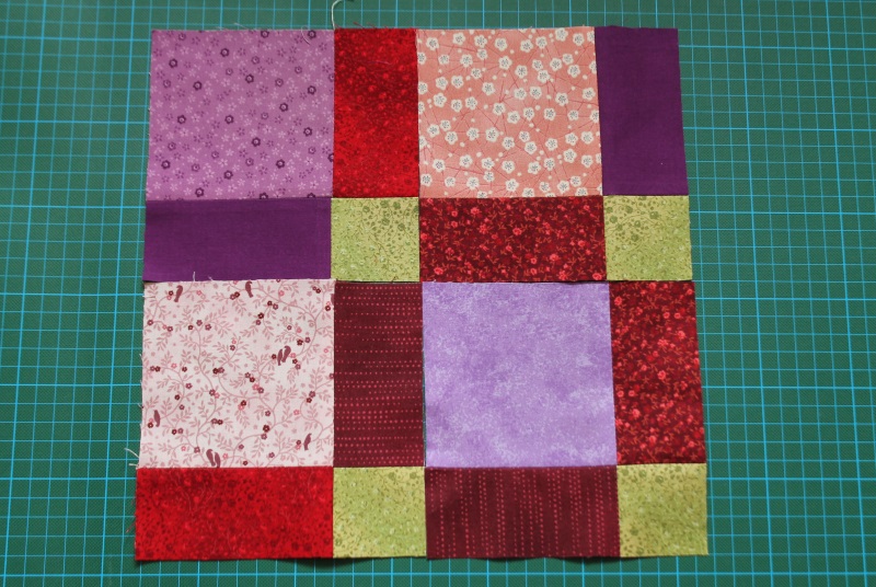 Aus den neu entstandenen Teilen lassen sich verschiedene sehr schöne Muster zu einem neuen „Block“ legen.