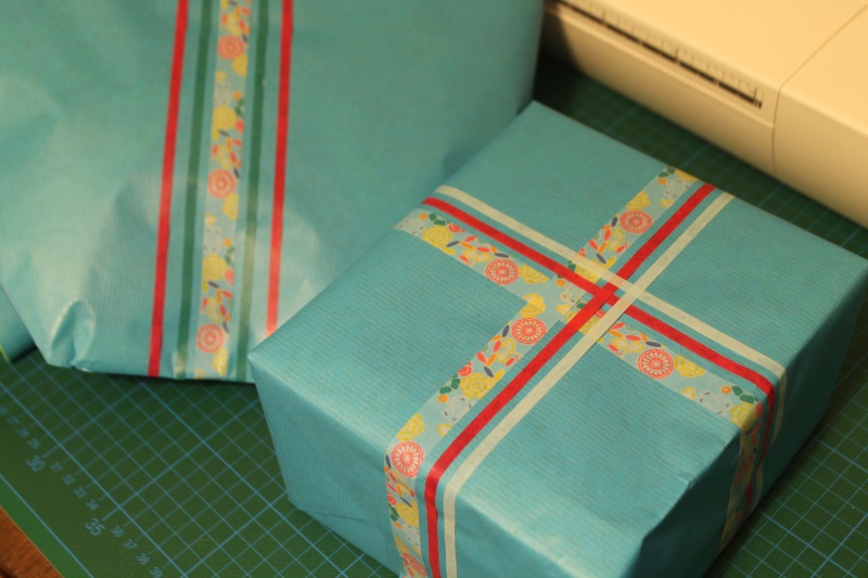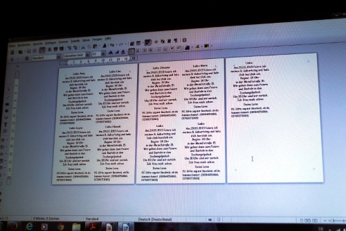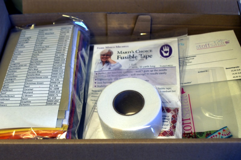 Ein Päckchen inspiziert, mit vielen schönen Sachen vom Stoffsalat, dann Einladungskarten für den eigenen Kindergeburtstag fertig gemacht.