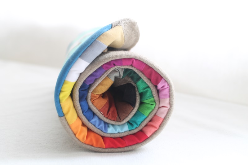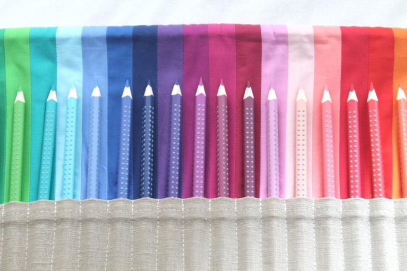 Ich bin so begeistert von diesen Rollen, dass ich mir selbst das Stoffpakt bei Stoffsalat bestellt habe. Darin sind 10cm breite Streifen von jedem Stoff und man hat Reserven für viele weitere Stifterollen und andere Regenbogen-Projekte. da ich ja mit vielen Nichten gesegnet bin, die allesamt wunderbar kreativ sind, war das sicher eine gute Investition. Außerdem ist es ein tolles Geschenk für Mädchen-Geburtstage von Freundinnen.