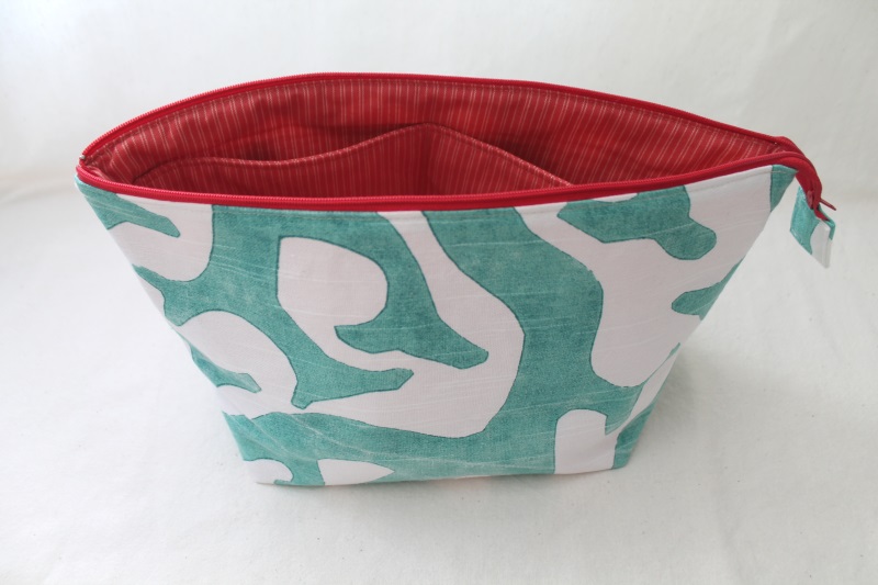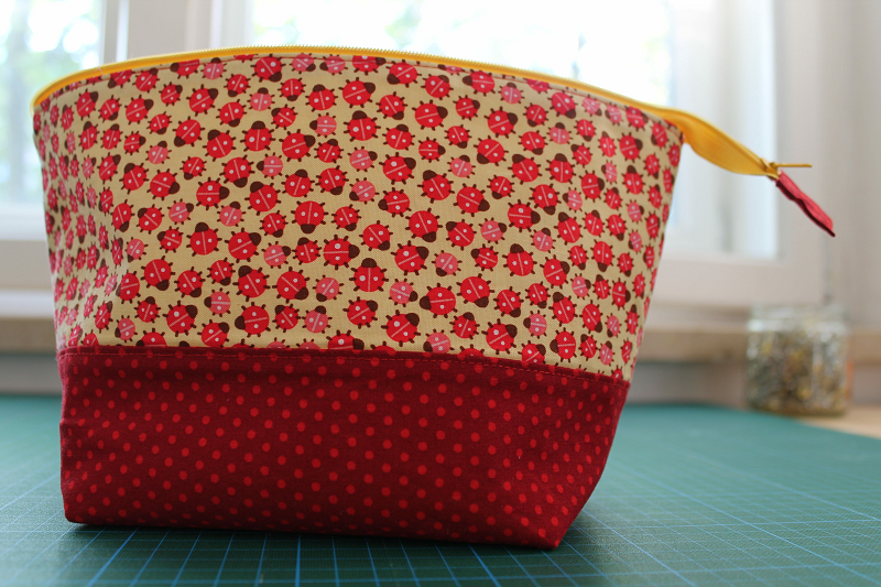 Ganz am Anfang meines Näh-Einstiegs habe ich schon gleich eine Kosmetiktasche genäht nach einem Schnittmuster von Trash Monstarz, das sehr ausführlich für Anfänger alle Schritte beschreibt. Die ist auch immer noch im Einsatz, platzt aber bald aus allen Nähten (so voll).