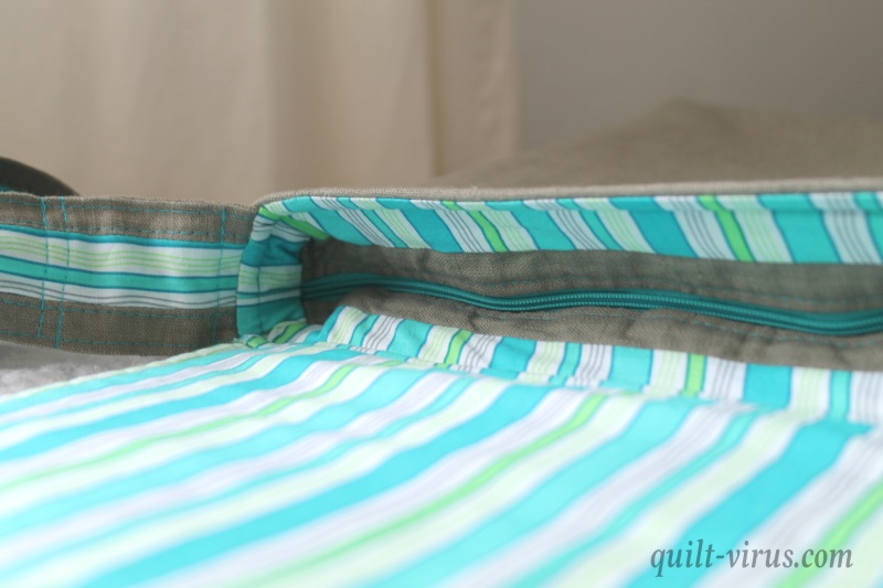 Den Patchworkstoff habe ich auch als Innenstoff der Tasche verwendet. Die Klappe wurdeam Rand nochmals abgesteppt.