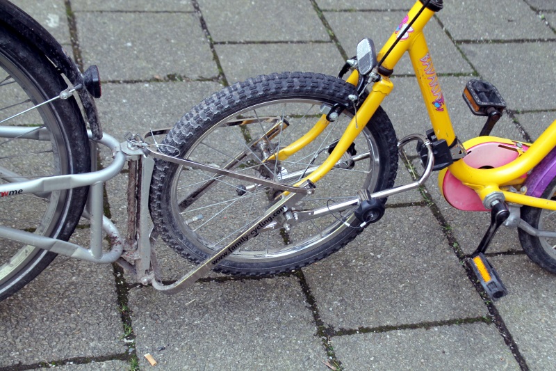 Wir wollen zur Isar fahren, für die Kleine zu weit deshalb wird sie mit dem Follow Me hinten drangehängt – sehr praktisch. An der Isar war es schwer ein Foto ohne Menschen zu machen, ganz schön was los.