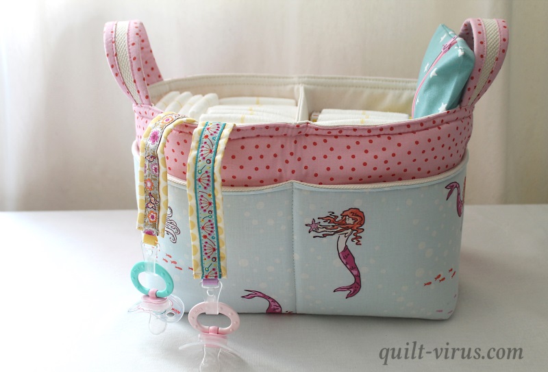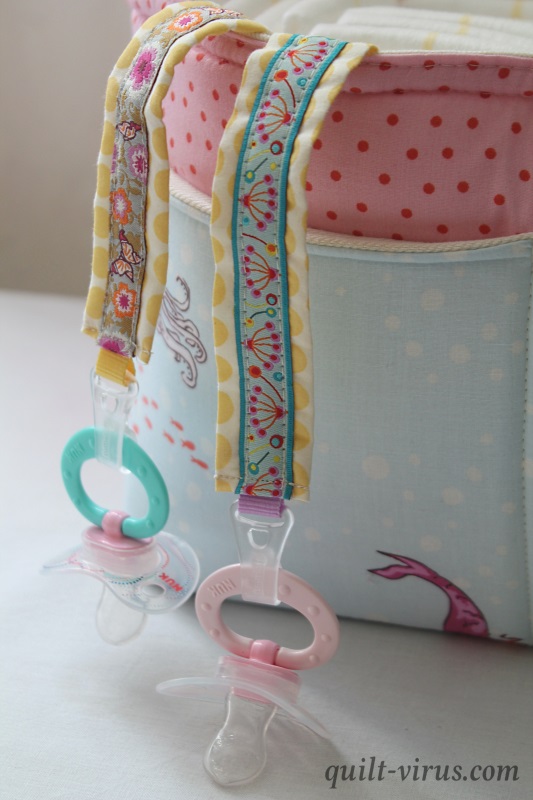 Deine Version des Divided-Basket finde ich sehr schön – gerade für eine kleine Dame. Die Schnullerketten und das Feuchttuchtäschchen sind immer eine schöne und praktische Resteverwertung.