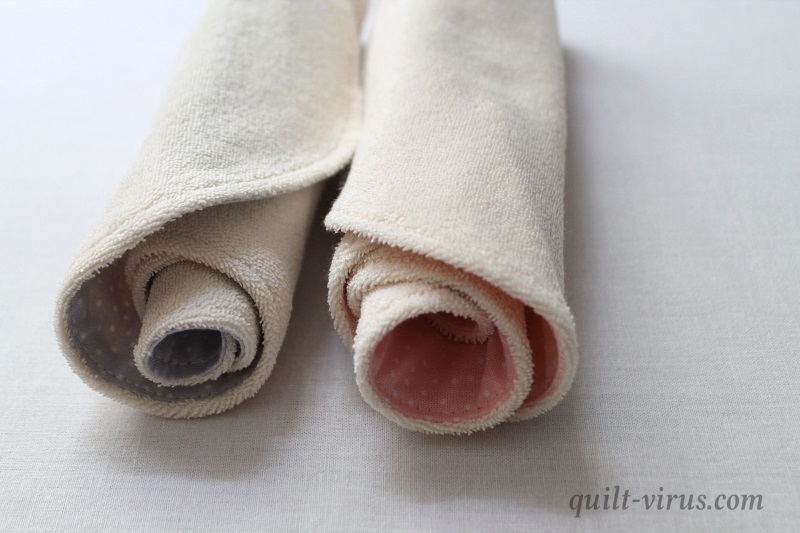 Die Spucktücher habe ich nach dem kostenlosen Schnittmuster und der Anleitung von fabrikderträume genäht. Die Stoffe sind aus der Bio-Serie Prinzessin von Westfalenstoffe in rosa und grau.