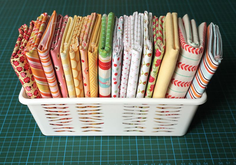 Mehrheitlich sind die Stoffe von Riley Blake aus dem Sale von Königreich der Stoffe, einige habe ich zuletzt für den Baby-Quilt und die Stoffabbau-Kosmetiktasche verwendet.