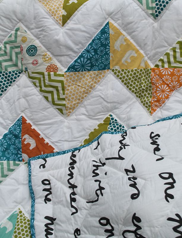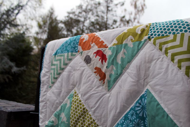 Gequiltet wurde in Zick-Zack-Linien entlang des Musters.