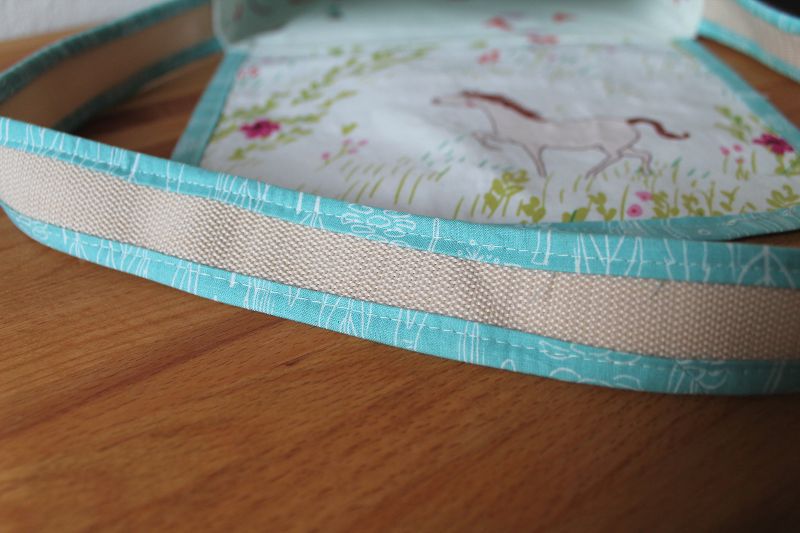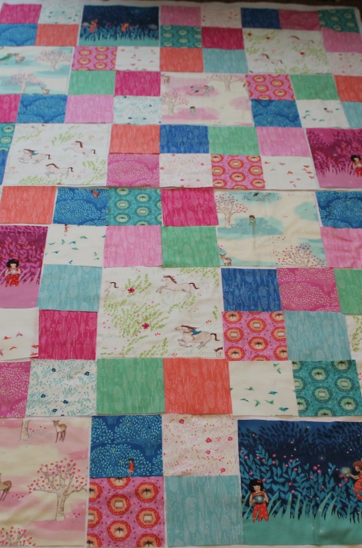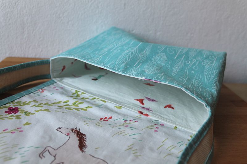 Von diesem Stoff habe ich gleich mehrere Meter gekauft und bei einem anderen Projekt (kommt noch) als Backing also als Rückseite für den Quilt benutzt.